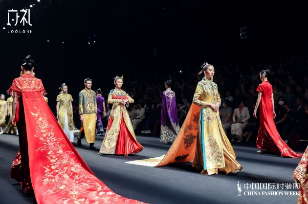 这是尚仄国际及其创立的婚俗文化服饰品牌-六礼· LOOLAYY在2023秋冬中国国际时装周舞台上的首次亮相,系列新品惊艳而至,给观众带来了一场别开生面的中式美学盛宴。