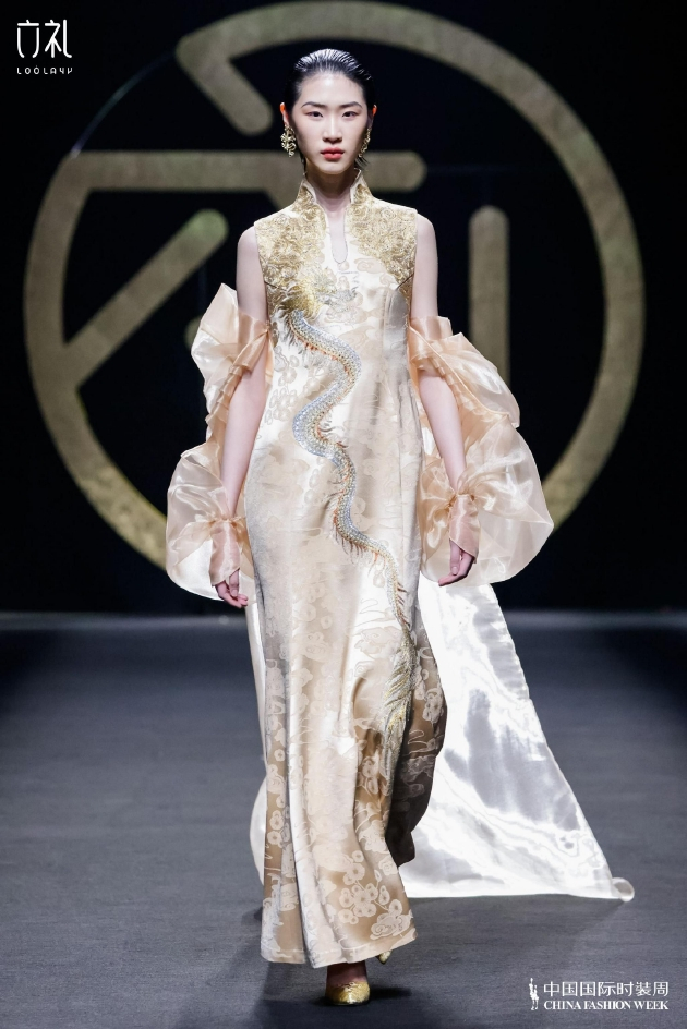 这一季,六礼·LOOLAYY将以‘仰韶大唐’之媒 ,发掘传统新中式礼服。在饱含华美国学的中式风格中 ,挖掘现代女性在国学传承中之美。中国千年非遗刺绣,、云肩等工艺运用在服装设计和制作上,运用体现在秀款及常服的设计中,既保持了服饰本身的质感,同时兼具艺术和时尚的审美表达。