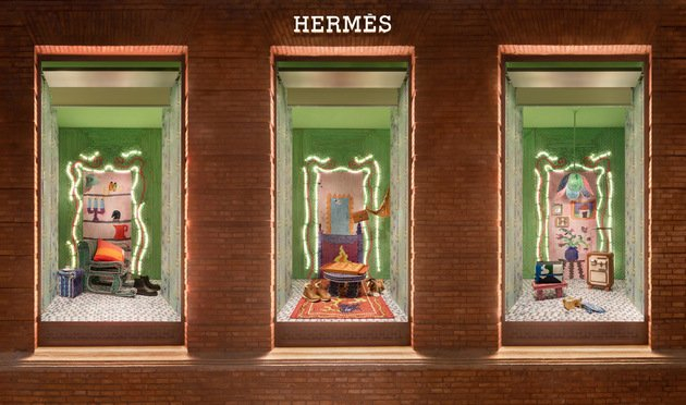 爱马仕诚邀法国艺术家Delphine Dénéréaz女士打造“爱马仕之家”冬季主题橱窗