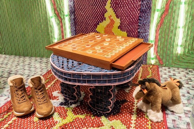 本次创作中,艺术家延续其标志性编织手法,又辅以童趣涂鸦和符号拼贴,渲染普罗旺斯的节庆意象、斑斓色彩与家的温度。男性世界橱窗邀请人们加入节日前夜的燃木仪式:火光轻曳,Samarcande 迷你棋盒静候冬夜对弈;枝叶疏朗,Clic H 手镯点亮起居日常。移步至餐厅,访客在女性世界橱窗的晚宴桌前落座:丝润晶透唇膏化身缤纷甜点,Tressages Equestres 系列餐瓷盛放象征丰收与感恩的佳肴。帘幕之外,引导之星点亮配饰橱窗,传统节庆糕点寓意团聚与永续,为 Mini Medor 手提包加冕。