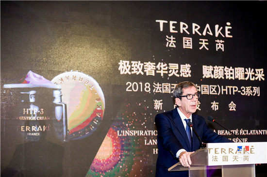 在当晚的新品发布会上,法国天芮(中国区)副总裁张宁君先生的致辞中就淋漓尽致的对法国天芮进入中国五周年以来的品牌历程及新一年的战略规划做了完美阐述,而作为进入中国CS渠道的欧系护肤品牌,天芮一直定位于中高端领域,并持续引领中国CS渠道化妆品消费升级,带着这样的品牌使命,重磅推出了历经多年研发的匠心奢美之作---HTP-3铂曜系列;“极致奢华灵感,赋颜铂曜光采”TERRAKE法国天芮HTP-3铂曜系列3款奢美单品终于揭开神秘面纱,在北京法国驻华大使官邸正式亮相!