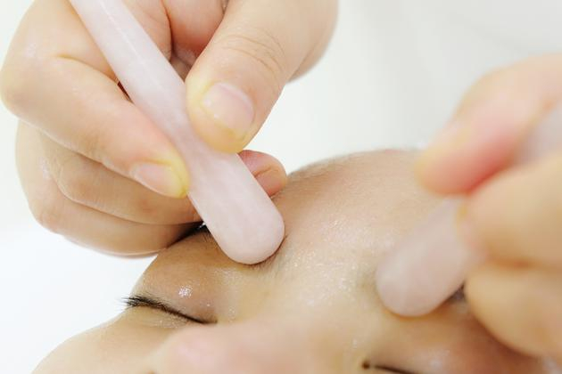 全新升级的护理过程中眼部按摩还会使用蔷薇粉晶按摩棒,天然的粉水晶蕴含多种对人体有益的微量元素,不仅可以促进血液循环,点亮双眸,配合穴位经络按摩,还可提升眼部轮廓,并促进后续产品吸收。