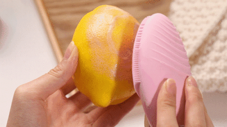 洗了不到半分钟的时间,柠檬就已经恢复了原本嫩黄嫩黄的颜色,细密的“毛孔”中的粉底也被刷毛仔细地带出~