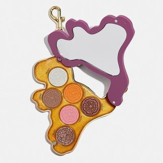 眼影盘做成了可爱的钥匙扣造型,表面上看是个小玩偶,轻轻旋转眼影就出现了,这带出去补妆跟变魔术似的。而且这种小吊坠平时挂在包包也好看呀,买眼影还能get(得到)一个coach小吊坠,物超所值了。