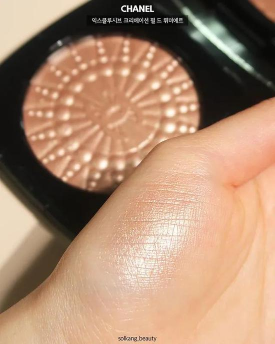 高光上印刻着精致的珍珠浮雕图案,带着华贵的气息,颜色是很清透的香槟金色,在阳光下水光感很强。