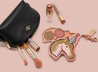因为彩妆灵感来自Coach的皮革制品,所以产品基本都带有Coach代表性的Sculpted C标志、野玫瑰花、恐龙、鲨鱼和独角兽等元素。