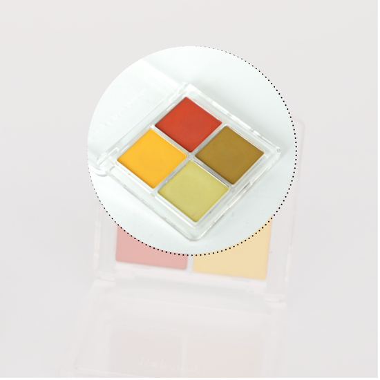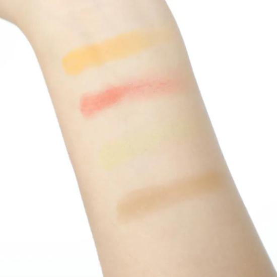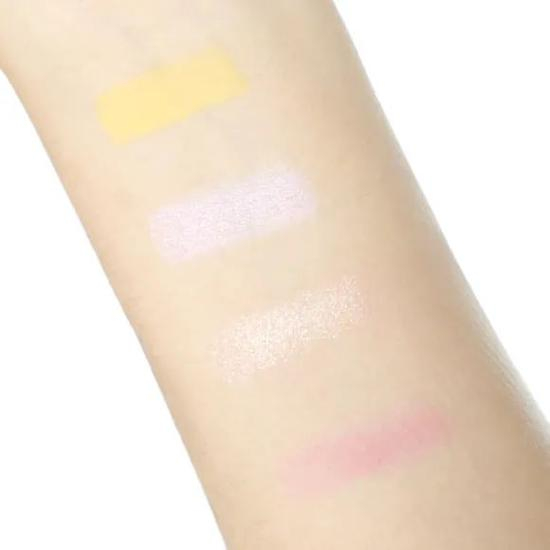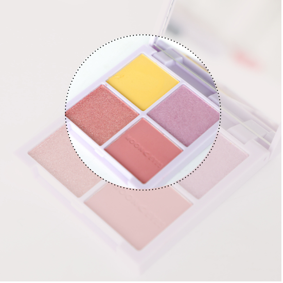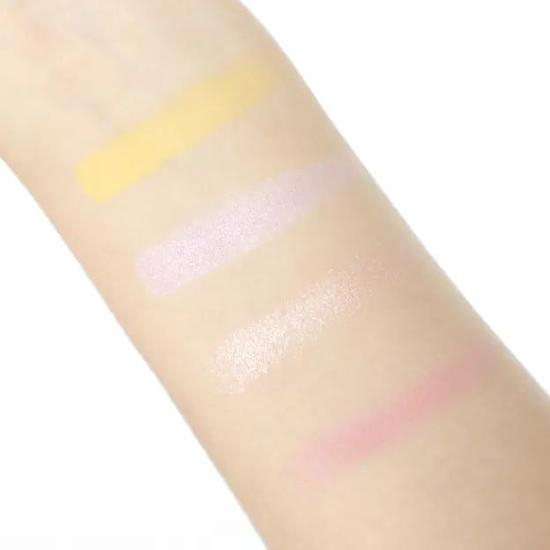 它是由柠檬黄、豆沙粉两个哑光色和糯米紫、香槟粉两个珠光色组成,配色比较夏天,乍一看还算不错。但是它的粉质还蛮干涩的,而且压盘很实也没有改善飞粉问题,品质真心一般。