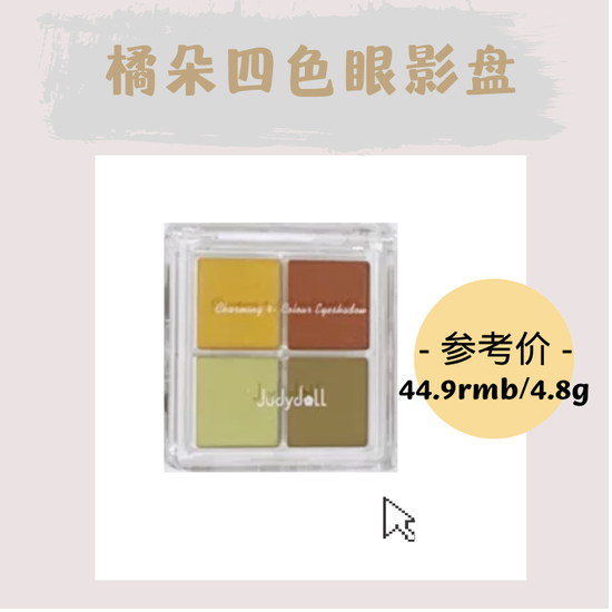 平价眼影中,我最推荐的就是橘朵了!尤其是小巧的四色盘,真的很适合出门的时候带,关键是调色盘系列还可以自己选色成盘,超级人性化!