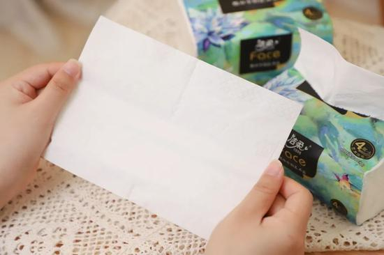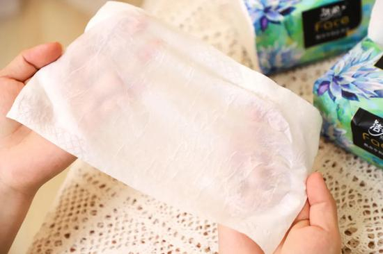 当然,洁柔也是争气的,足足有4层,非常厚实,但并不硬,接触到肌肤是细腻柔软的。用水打湿后,它都能坚强得保持不破,也不掉屑,狗砸平时都会用它来擦脸!