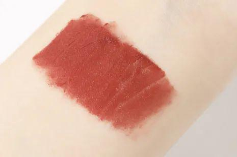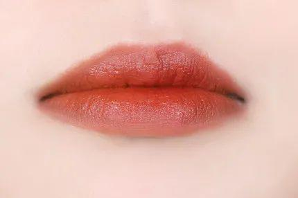 丝绒质地,和宴会等偏正式的场合很搭。关键是它上嘴不显唇纹,哑而不干的状态就超级nice(好)~薄涂橘调超级明显,棕调也能看得出来,两者中和得恰到好处,就显得既庄重又提气色,堪称黄皮星人的福音!