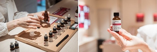 为了更好的为不同肌肤需求提供定制化解决方案,来宾不仅可以现场体验渡美AI肌肤检测黑科技,通过973个肌肤精准测位点,生成智能肌肤检测报告,随后,渡美专业配方师会根据7大维度的检测报告,为来宾定制出最适合的护肤解决方案,并现场调配“独一无二”的专属原液精华,最后亲手贴上写有自己姓名的产品标签,完成沉浸式的[因肤定制]体验。自己动手调配,更赋予了整个定制过程仪式感与专属感,更将品牌的日式匠心与细节打磨彰显的淋漓尽致。