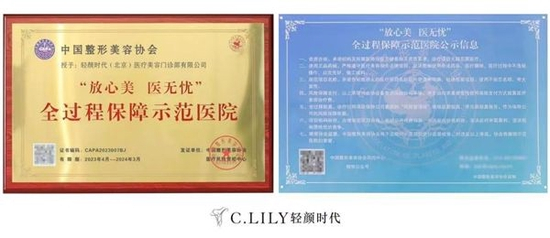 轻颜时代荣获“放心美 医无忧”全过程保障示范医院荣誉称号