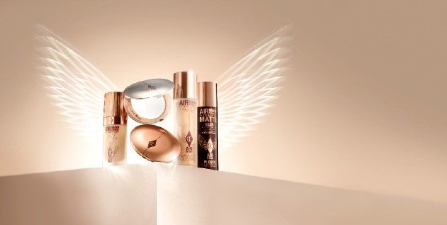 [图注:Charlotte Tilbury底妆家族(CT‘小金盘’粉饼/CT‘小银盘’粉饼/CT超磨瓶粉底液/CT定妆喷雾)]