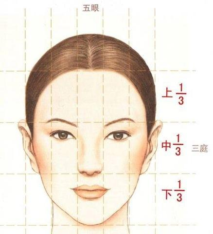 “三庭五眼”大家肯定都不陌生,它算的上是一个标准的审美,符合三庭五眼的人被称为长得很标致。而其中“三庭”就是这三个位置的距离几乎相等:额头到眉毛=眉毛到笔尖=鼻尖到下巴(如下图所示)。