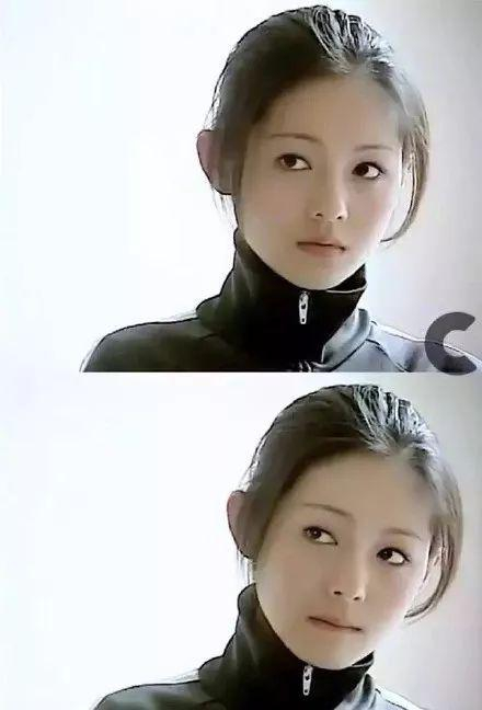 参考她早年间的两个造型,头发扎起来,加上两边碎发对于脸型的修饰,脸的圆润感也被削弱。