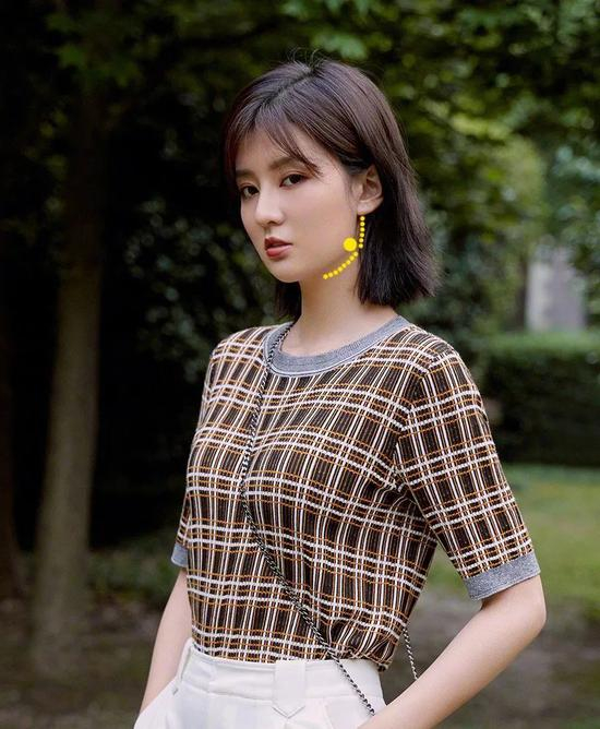 而兰芊翊的刘海造型又刚好加重了她面型下坠的问题,憨厚感就再度增加了。