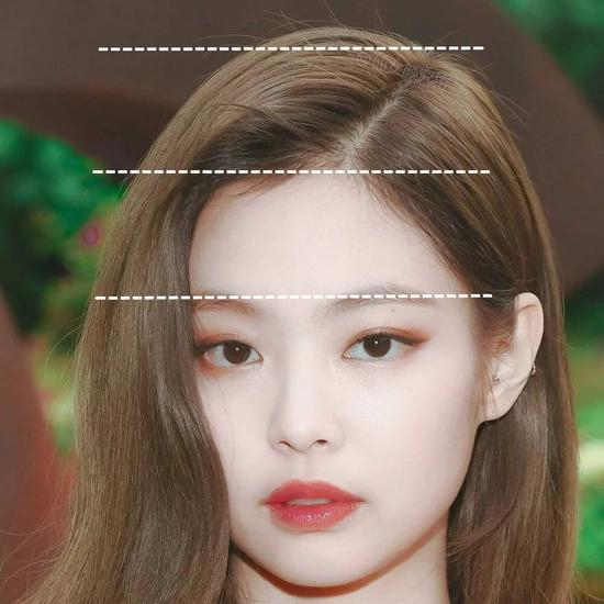 从刘亦菲、Jennie、赵蕴卓的颅顶高度可见,它和发际线到眉毛的高度几乎是一致的,且头型线条饱满,能缩小面部占比,更显脸小。