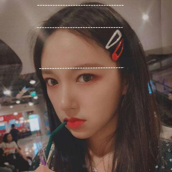 在颅顶最高点取一束头发,用玉米须夹板夹五秒,再把左边的头发盖住即可。