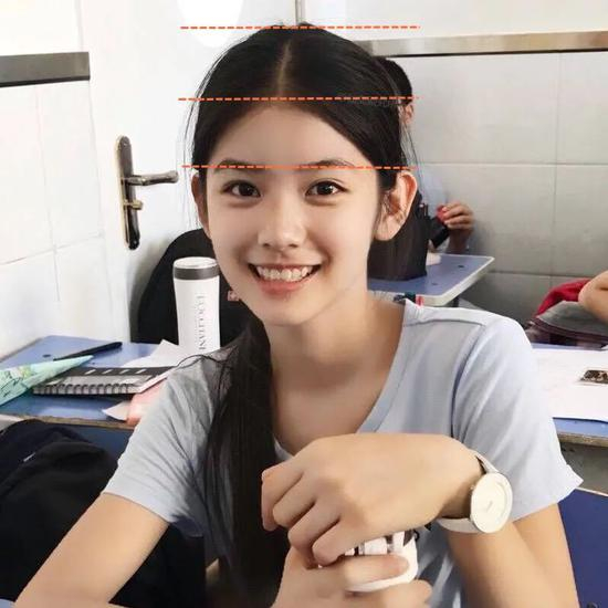 不仅在于她的颜值,还有她那浓密的发际线和蓬松的头发,有一种高颅顶头包脸的感觉。