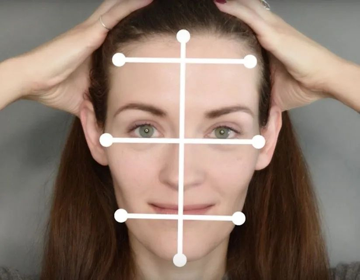 判断脸型,同样有几个重要的维度,需要我们去比较。首先就是额头、颧骨和下颌,这三个地方的宽度,哪里最宽。