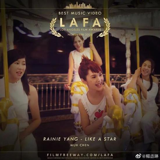 前段时间杨丞琳发文庆祝自己的新歌《像是一颗星星》MV获奖~