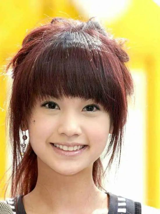 她在出道早期一直顶着这种厚重的刘海,本身就比较圆的脸型加上尚未褪去的婴儿肥,配上这种毫不透气的超厚齐刘海,不仅破坏了面部的比例,还拉宽了脸部线条,显得脸大了不止一圈~