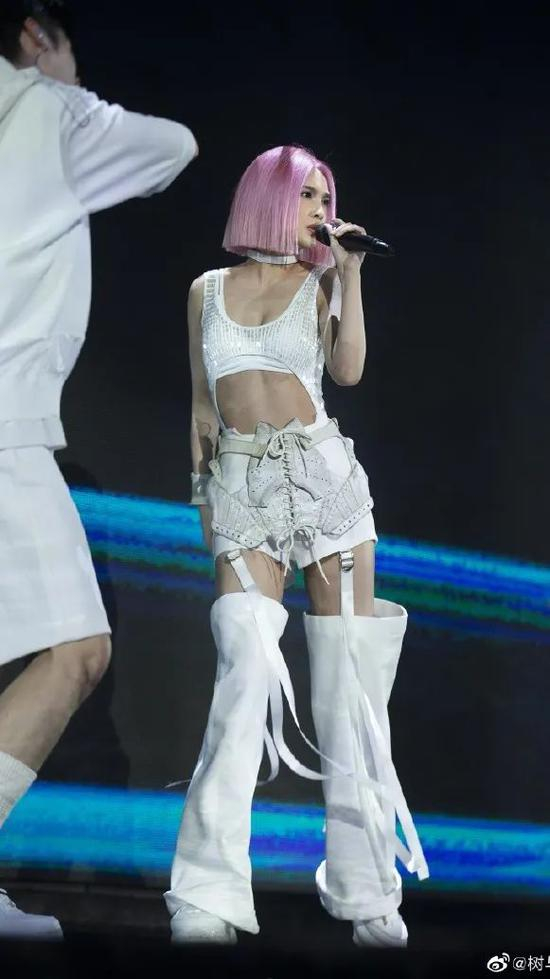 在舞台上穿着露腰短上衣也没有一丝赘肉,这身材说是18岁少女也没人敢说不像啊!
