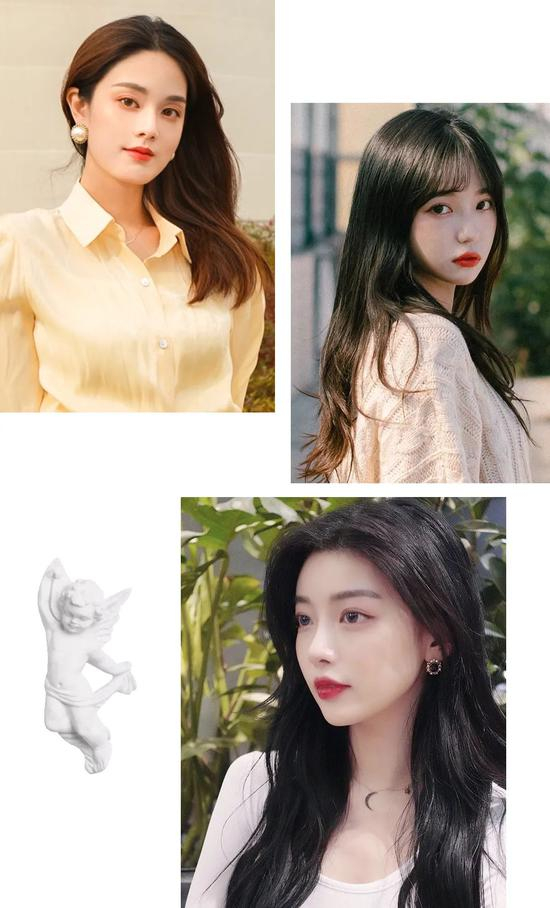 而且肉圆脸披发也能盖住不清晰的下颚线,显得娇俏,自然不做作的感觉。