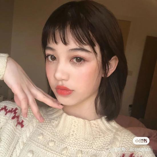 那你再看看她剪了眉上刘海之后的样子,有没有一种对她印象急剧加深的感觉?不仅达到了减龄的效果(虽然之前也少女),五官的轮廓更是被凸显出来。再加上她巧妙地利用了冬日热门发色进行装饰,搭配美瞳与韩系轻薄透气感妆容,emm,谁不想和这样的甜美女孩恋爱呢?