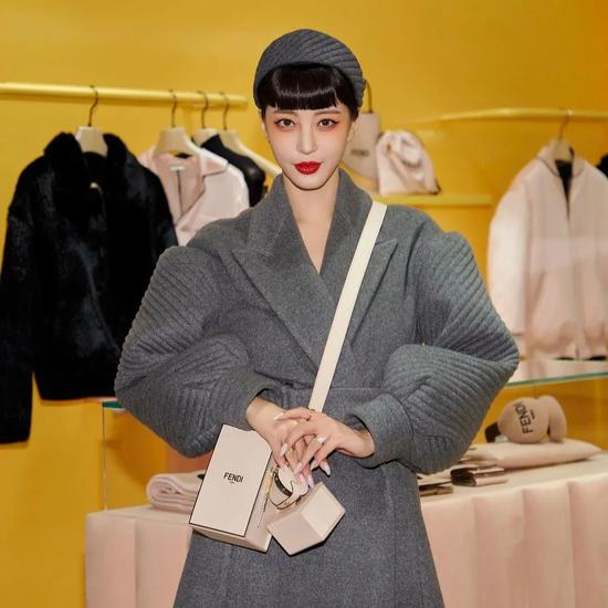 出席Fendi活动时,大红唇加复古刘海与发箍,特地打造了Fendi式妆发,果然美女是百变的。