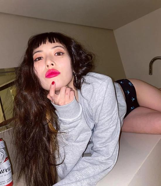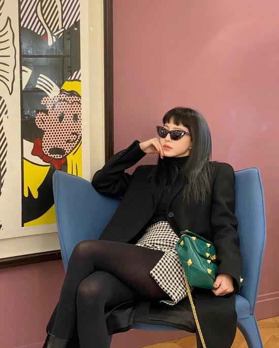 换个发色,又或者变成有点狗啃式的摩登感刘海,猫型墨镜来增加氛围与气质。