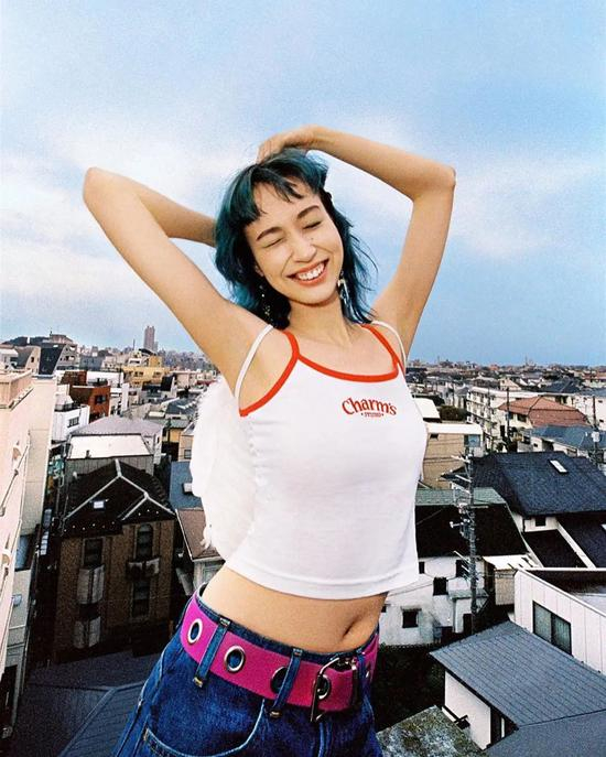 说到微卷的眉上刘海,不得不提到的就是水原佑果。从穿着、妆容到发型,都极具个人特色,再说得仔细一些,便是她的眉上卷刘海了。