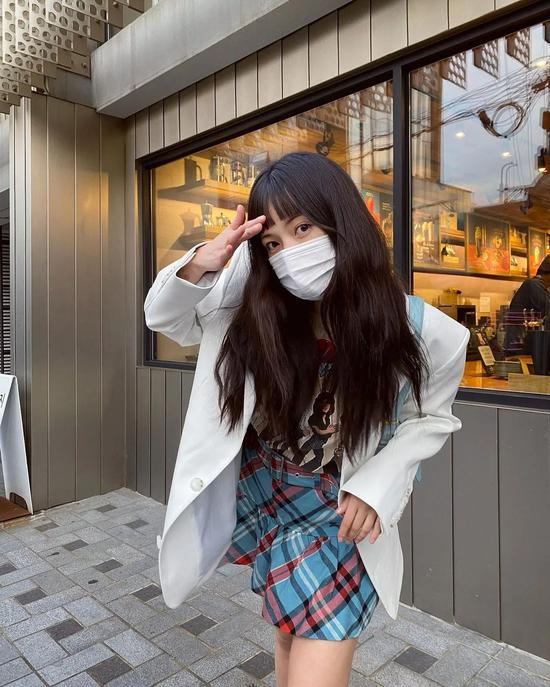 最后再来看看近期的眉上刘海,挪不开眼睛了。将眉上齐刘海弄卷,且并不是很厚地贴着额头,留一些空气给刘海。和李圣经的眉妆截然不同,前者属于自然与日常感,韩艺瑟的则更精致与细长一些。亮点是她的发色,蓝、棕色混合在一起,整体给人以慵懒、舒适的感觉。