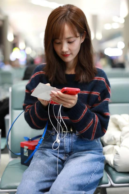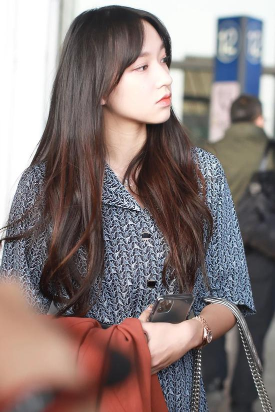 但剪了刘海的李一桐,成功地遮盖掉了发际线过高的问题呢!