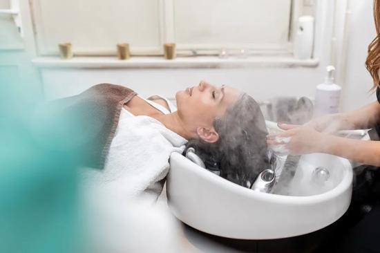 当头发彻底湿润时,热气才会使毛孔打开,头皮里的脏东西才能被洗干净。