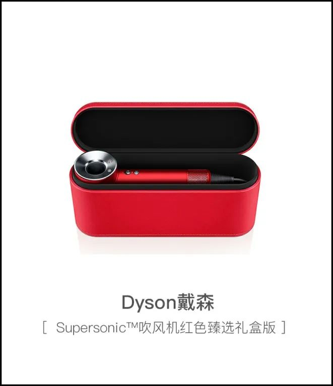 姐妹们是不是还在面临着发质干枯、毛躁、发型无法持久等多种问题?为了解决这个烦恼,戴森的这款Supersonic™吹风机可以实时监测,帮助你调整风温,有效避免头发过热受损哦~红色甄选礼盒包含了全新“元气开运红”配色的戴森Supersonic™吹风机及4款不同风嘴,可以满足仙女们的多种造型需求~