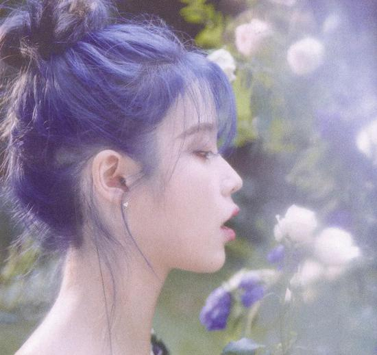 IU之前的蓝发造型还有人没看过吗?丸子头+空气刘海,妥妥的邻家女孩。