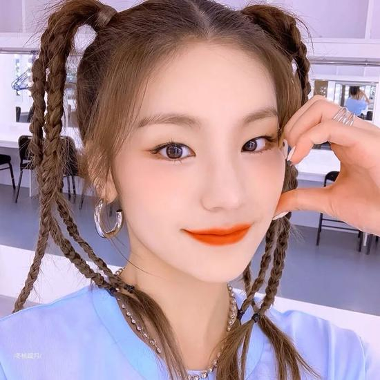 wuli(我们)茜茜子就是上庭偏长的脸型,很适合留法式刘海。不仅可以弱化她比较抢镜的上庭,而且还能突出她五官的优势。