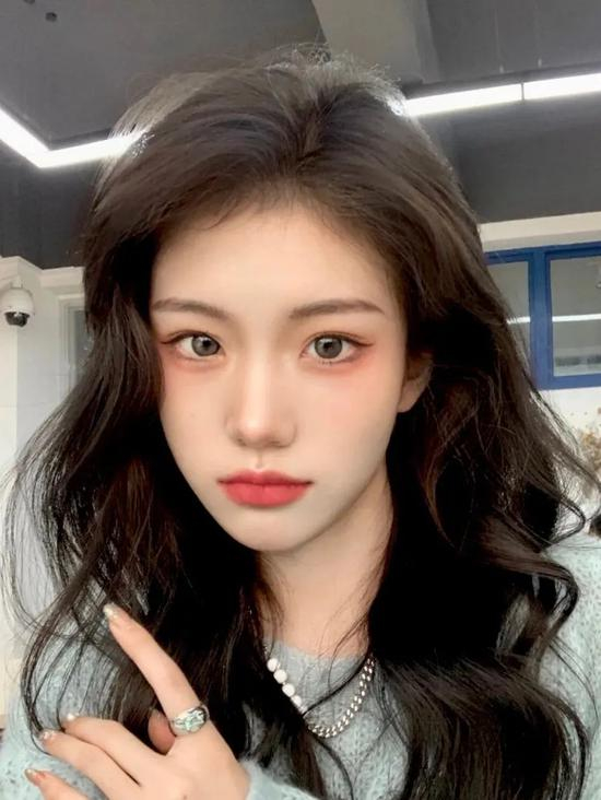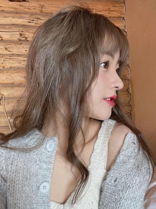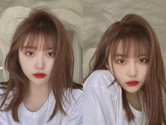 可以搭配少量的八字空气刘海,不仅整体看起来嗲嗲的,还能让五官更加凸显,适合脸小的姐妹,好看~