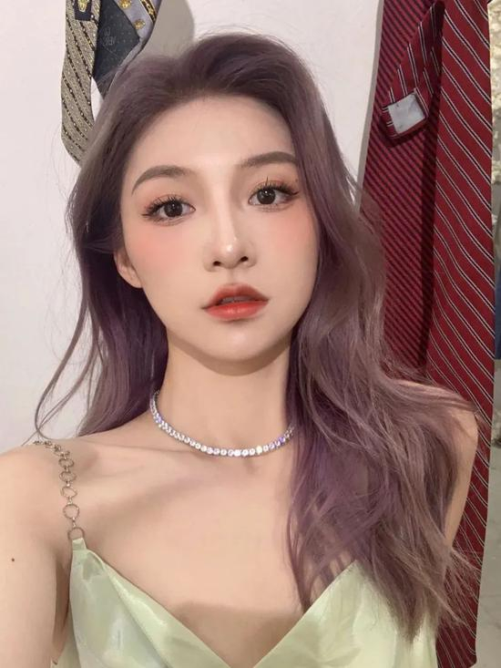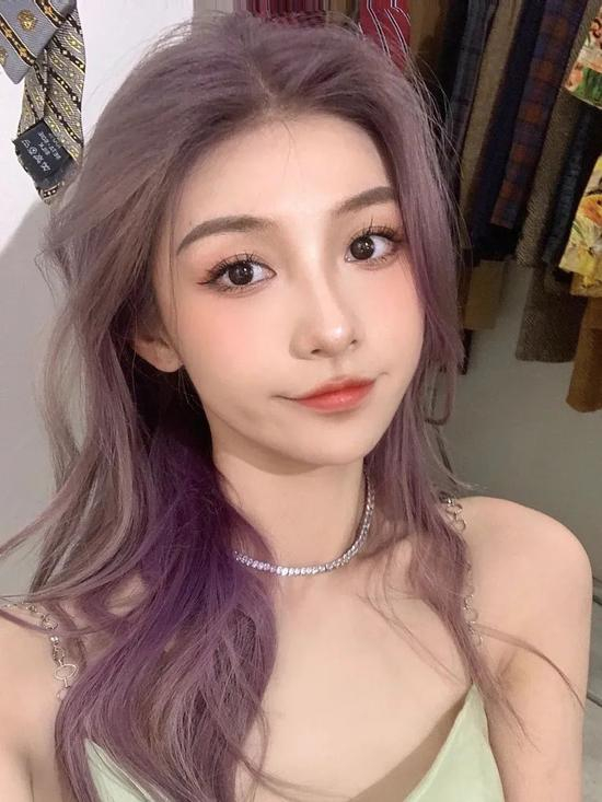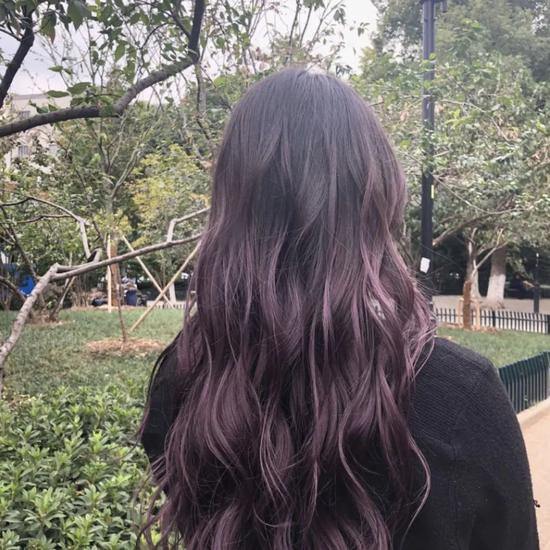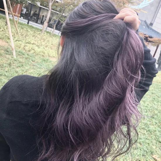 迷雾紫对那些不喜欢饱和度太高的妹子很友好,只需要染发根、发梢两色,发根染上冷棕调,发梢染上冷紫调,搭配起来特自然,日常又百搭!