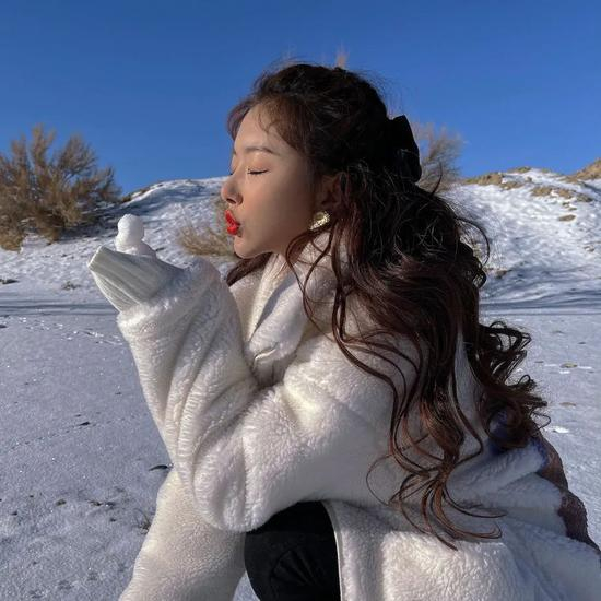 在冬天这个充满氛围感的季节里,搭配白色的绒绒外套,和大自然雪景来个美美的合照,出片率不要太高哦~
