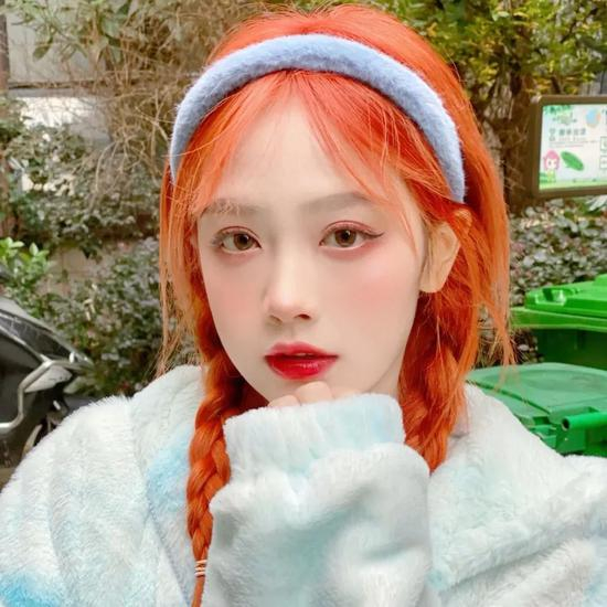 当然还有觉得不够亮的美女,鹿鹿原地建议染亮橘色!!没错,就是行走的大橘子!!染上它就像漫画里走出来的卡通少女,很奶思!但缺点就是褪色快,素颜灾难hhh。