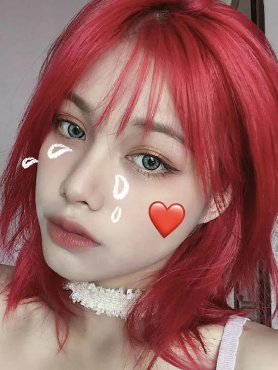 西西红看起来就比较夸张啦,很正的红色,也是漫画的既视感~感觉很适合夏天参加音乐节的时候染,火热十足,人群之中显眼又不突兀,谁染上它必须要赐一个“人间小辣椒”的称号哈哈。