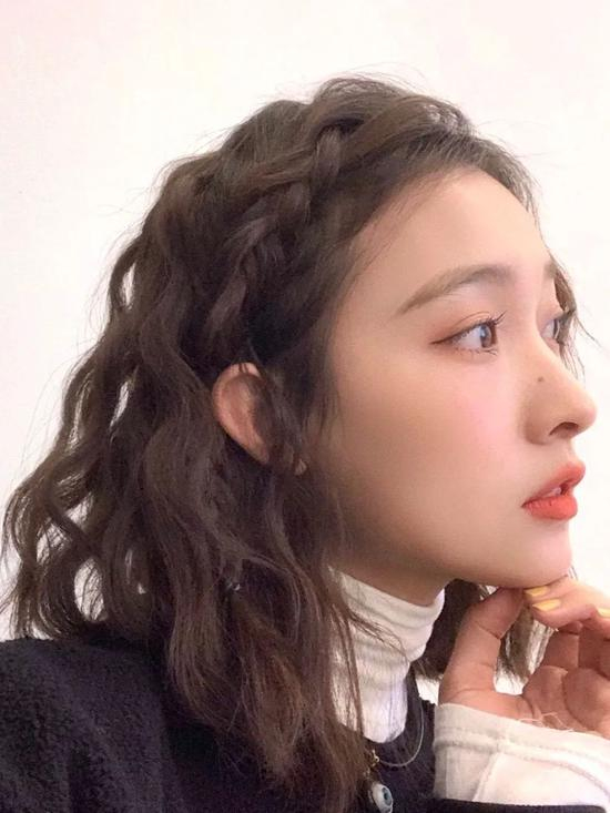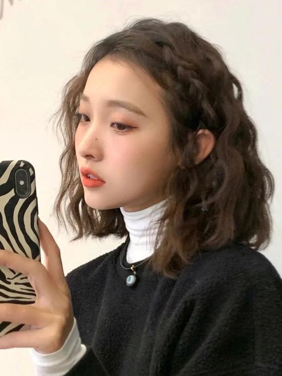 如果没有刘海觉得单调,也可以在额前编一股小辫子放置在耳根后,非常减龄!好像有一种随时随地准备去春游了的感觉~