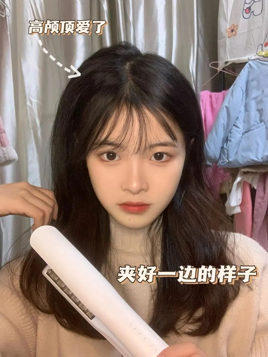 最外层不要夹,轻轻盖住里面的已经烫好的“玉米须”,你的发量绝对显多了不止一倍。