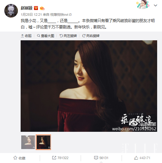 《乘风破浪》如今票房一波高过一波,口碑为王令它成为贺岁档中最大的一匹黑马,除了有搞笑学霸邓超、国民老公彭于晏,还有实力小花赵丽颖!宣传期间导演韩寒携赵丽颖亮相令现场爆满,看来wuli颖宝的人气可见一斑哦,也给2017的自己开了个好彩头。