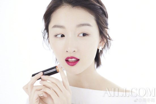 把枚红色涂出名的非社会我红姐莫属,周冬雨本身俏皮可爱,皮肤白皙。涂上后不仅让自己的皮肤更加如雪一样白皙,还不失古灵精怪!