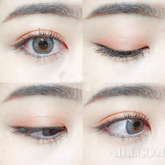 Step 1 :用南瓜色的眼影涂抹至全眼