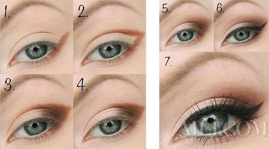 Step 4 :再用浅色的眼线描绘下眼睑,让眼睛更加圆润