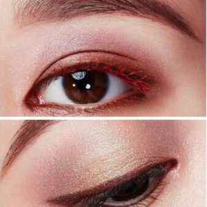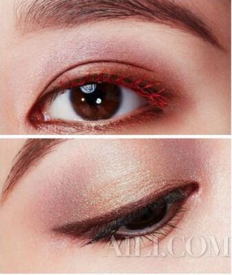 既然是“节日妆容”那么自然要高饱和度的色彩,除了红眼妆还可以试试莓果妆,日本女孩喜欢把夸张大片的晕染红眼影,换成精细度较高的莓果红眼线与睫毛膏,搭配塬本的褐色系眼影更是好看。迷人的眼神几乎都是用咖啡色的蜡笔质地来画,黑色的眼线反而会让人觉得太过于锐利。用酒红色的眼线来替代塬本的咖啡色眼线,就让让眼妆更显深邃,再加上一点点微微的珠光效果,实在是一画就爱上。